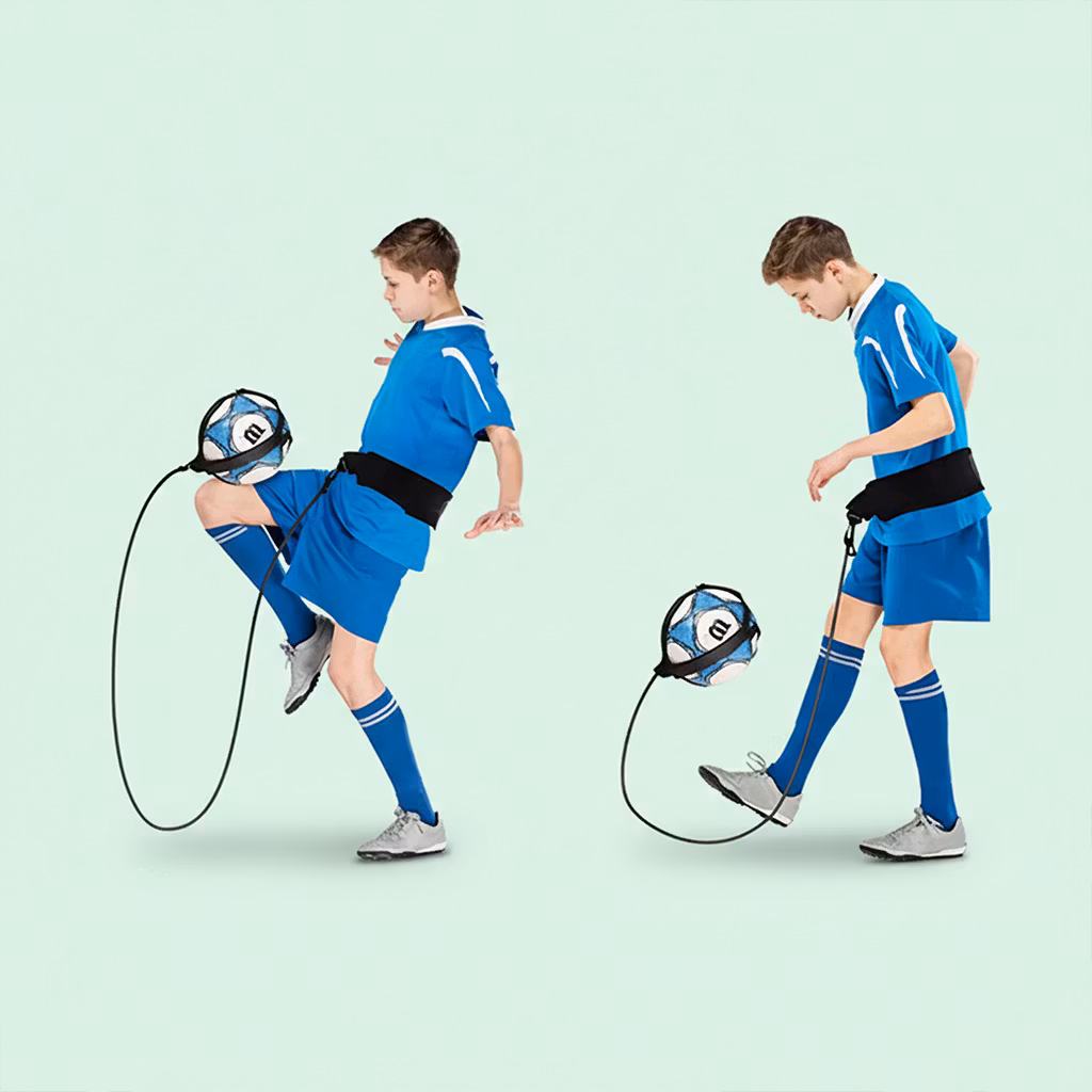 Tehokas tapa jalkapallon harjoitteluun. Tällä harjoitusnauhalla voit harjoitella tekniikkaa ilman, että pallo karkaa. Joustavan nauhan ansiosta voit potkaista palloa voimalla, ja se palaa aina takaisin sinulle.